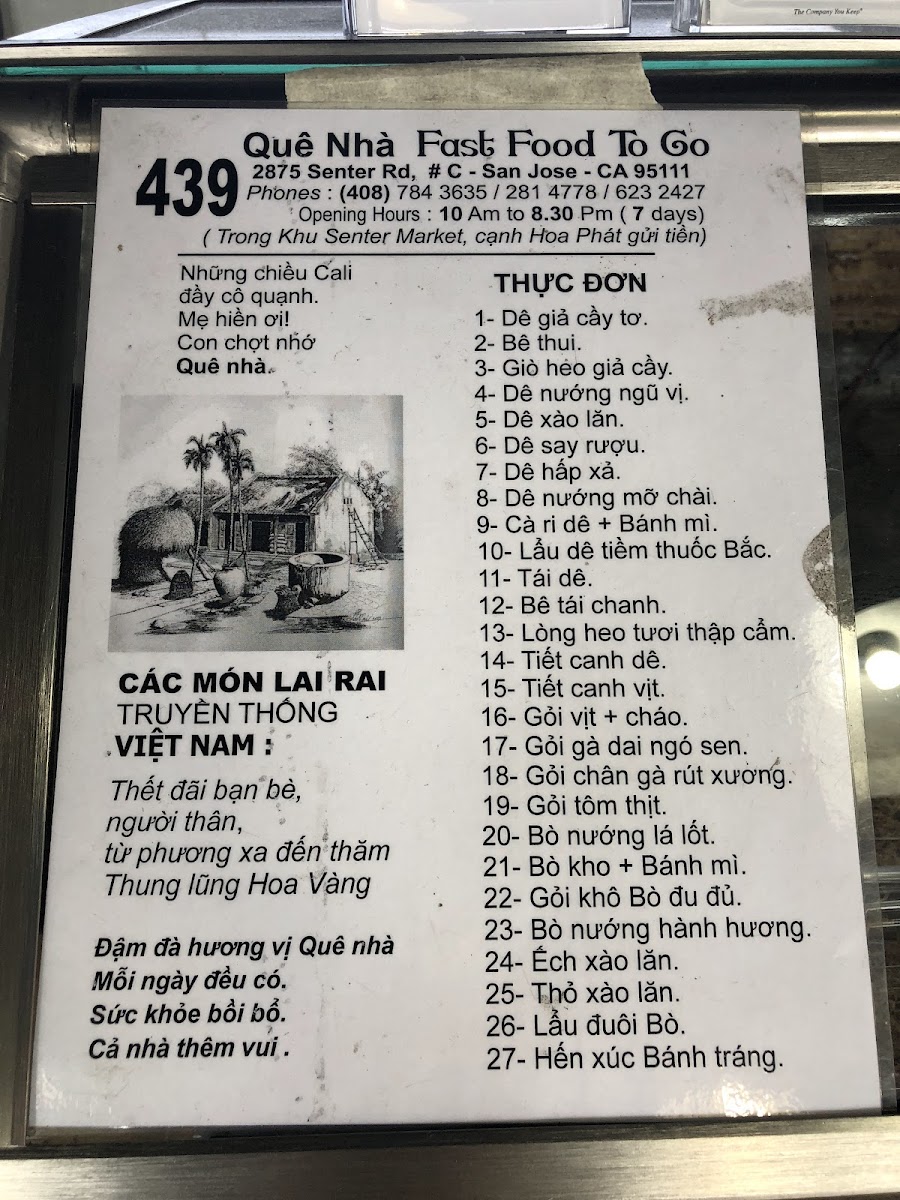 The menu at Quê Nhà Fastfood to go offers a straightforward, comforting selection of Vietnamese dishes that feel just right for casual get-togethers or quick meals throughout the day. This is the kind of place where familiar flavors bring a sense of home and ease, whether you’re sharing bites with friends or grabbing something nourishing on the go.